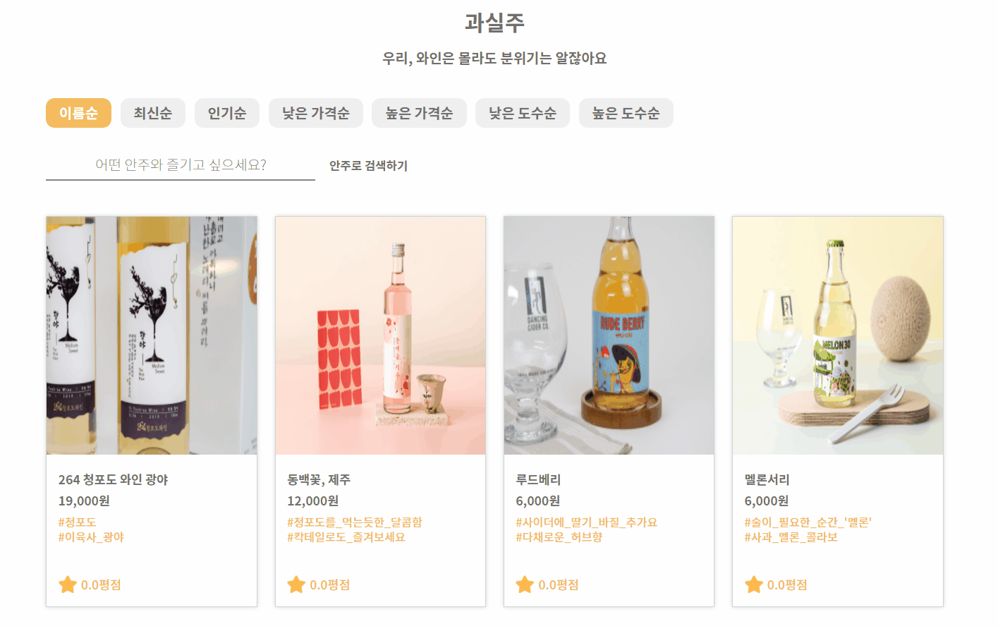 실제 사이트엔 없는 기능이지만, 팀원들과 상의한 후 새롭게 추가한 기능인 안주 검색 기능