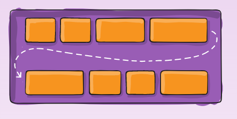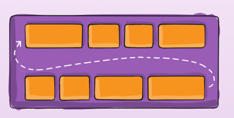 줄바꿈이 진행되고, 위에서 아래로 넘치는 item을 배치한다.