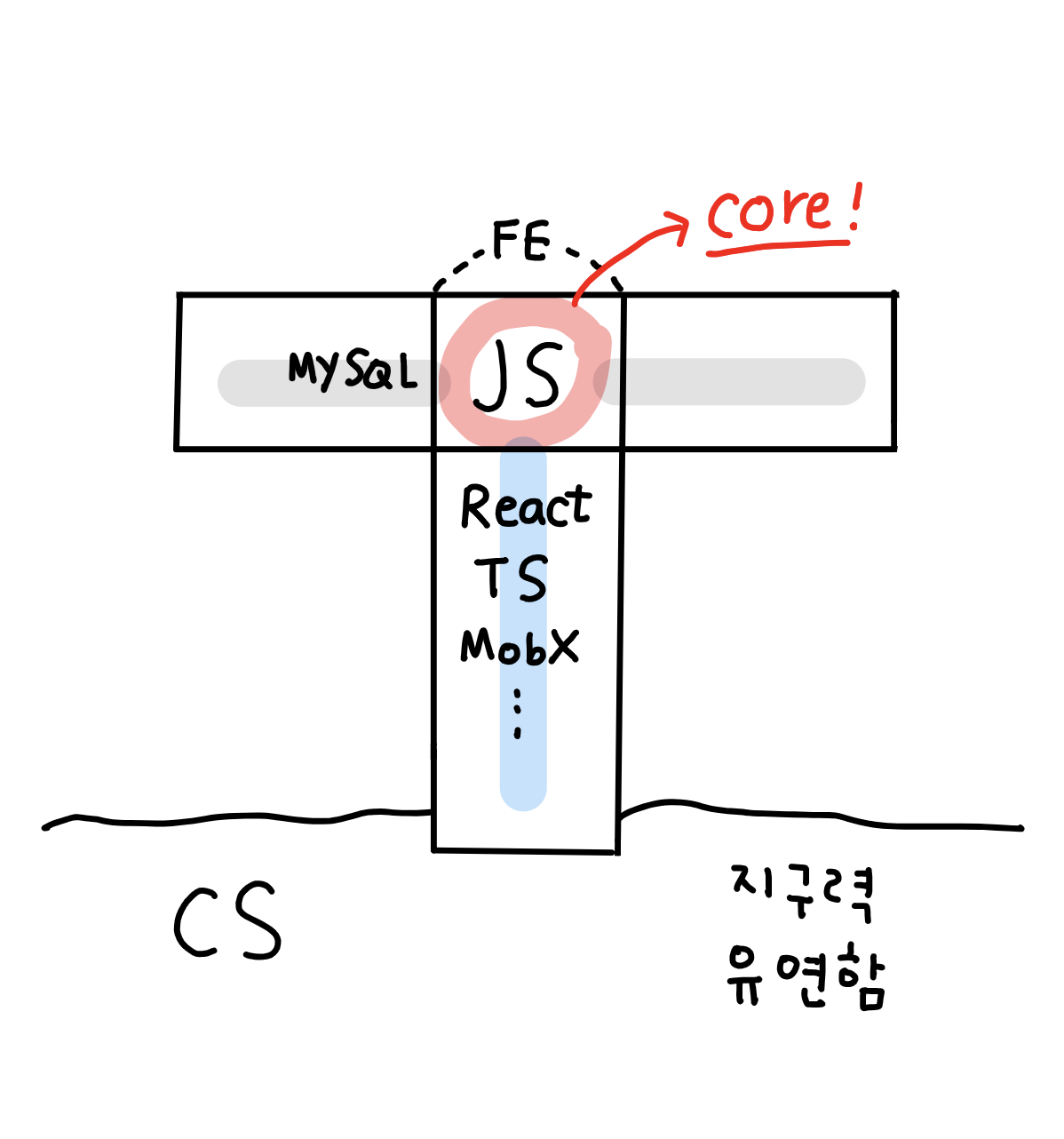 유투브로 이런 저런 영상을 찾아보다 드림코딩을 운영하시는 앨리님의 개발 공부 방법, 개발자 경력관리 영상을 보게 되었는데, (특히 주니어 개발자에게는) 가로로 다양한 스킬을 가지되 T자로 커리어를 쌓고 학습해나가는 것을 추천한다는 내용이였다.