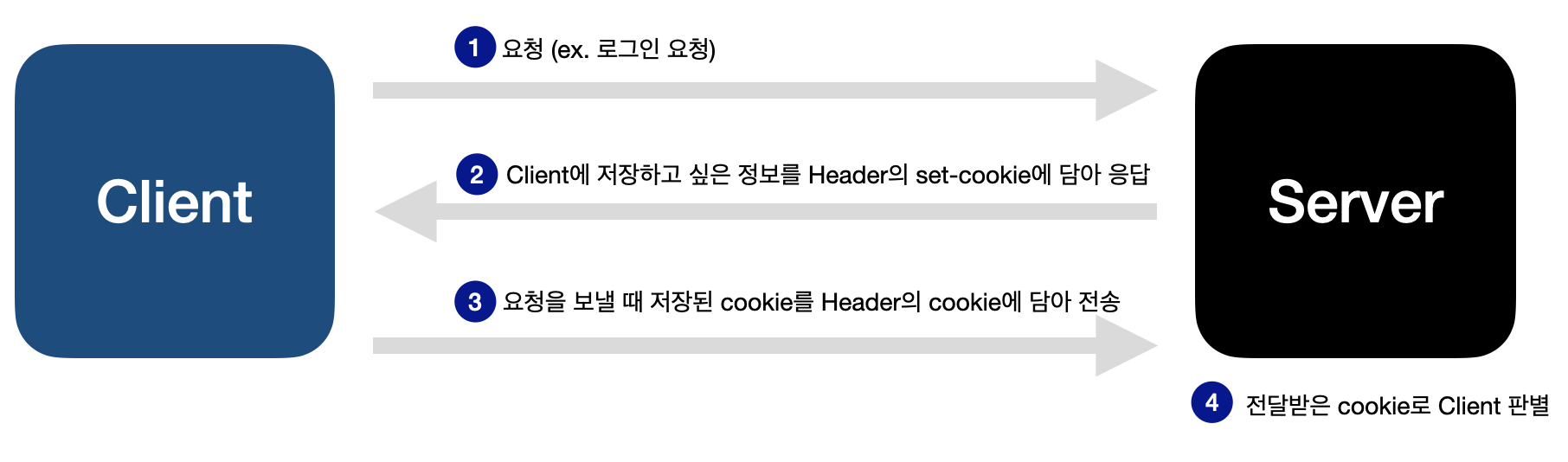 - Client는 요청을 보낼 때마다 Header의 cookie에 전달받았던 정보를 함께 보낸다.